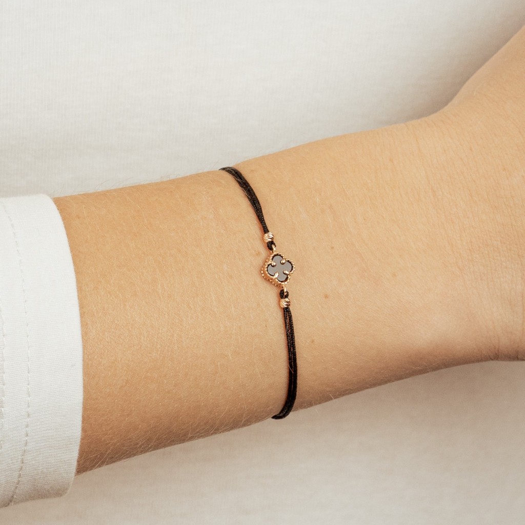 Black string bracelet with gold and onix