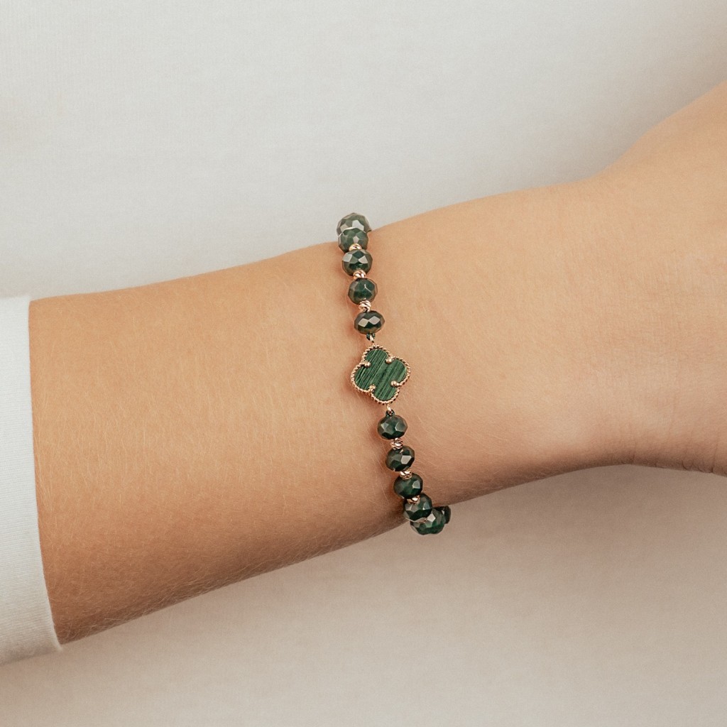 Green string bracelet with gold and onyxes