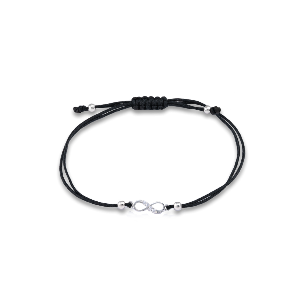 Black string bracelet with a silver pendant and zirconium "Infinity"