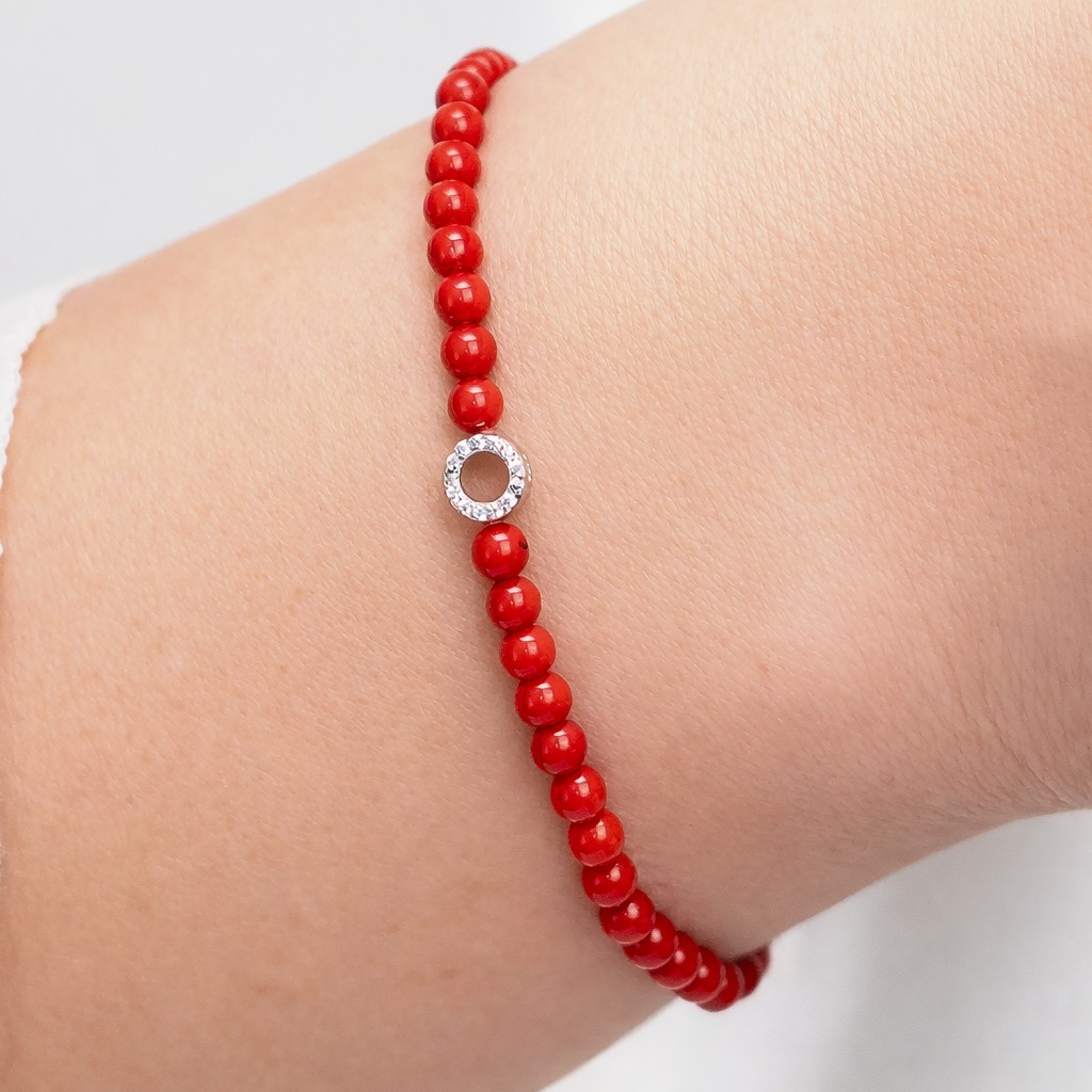 Coral bracelet with zircons and silver