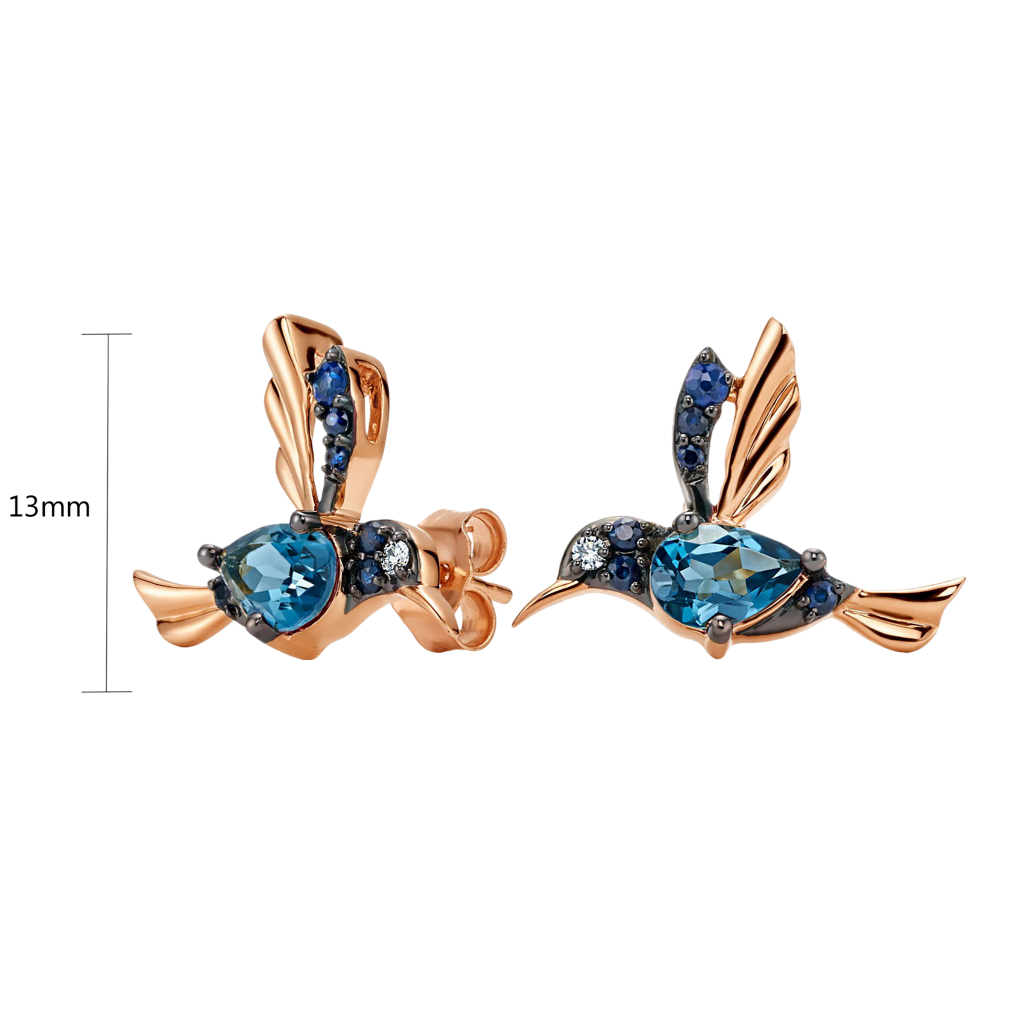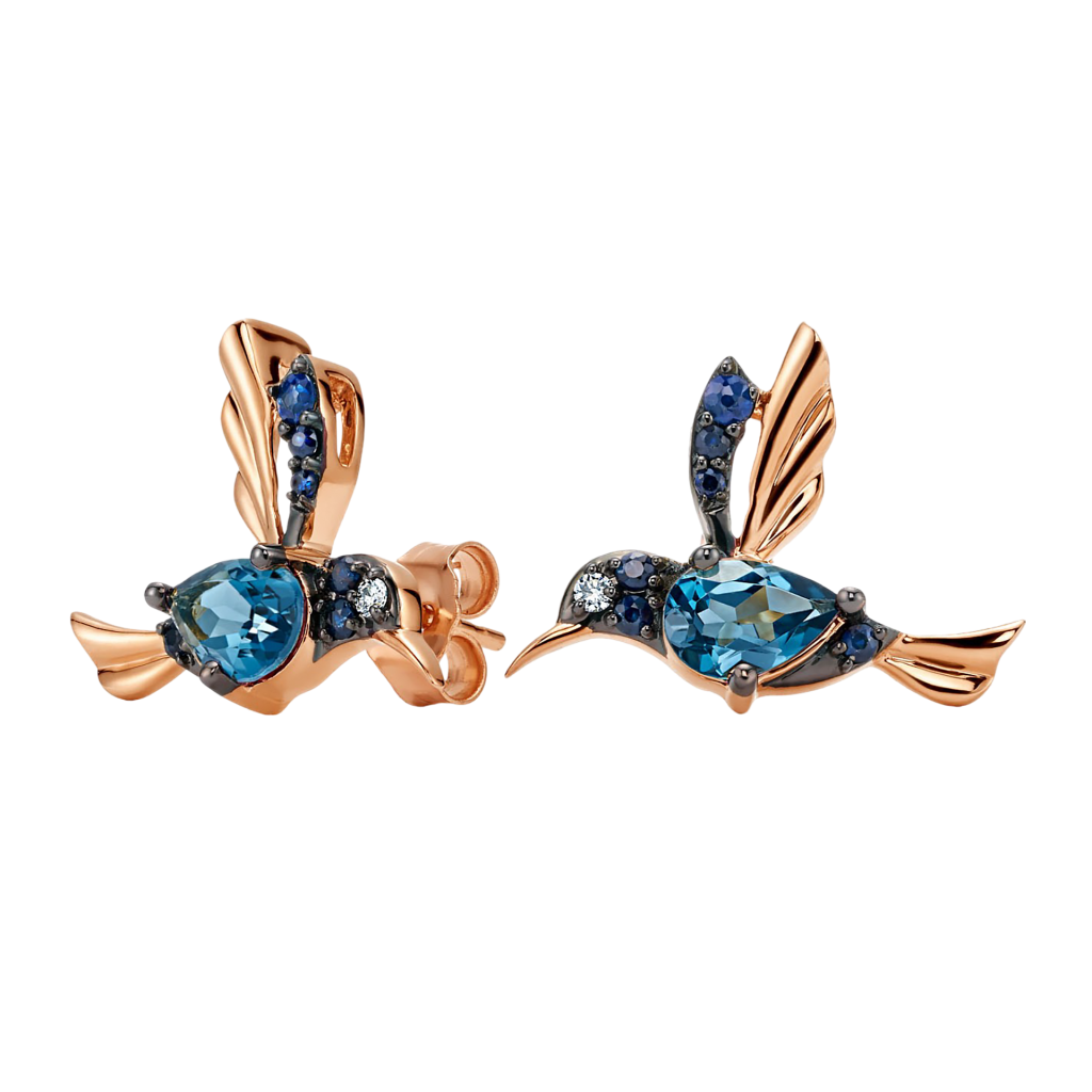 Gold earrings with topazes, sapphires and diamonds