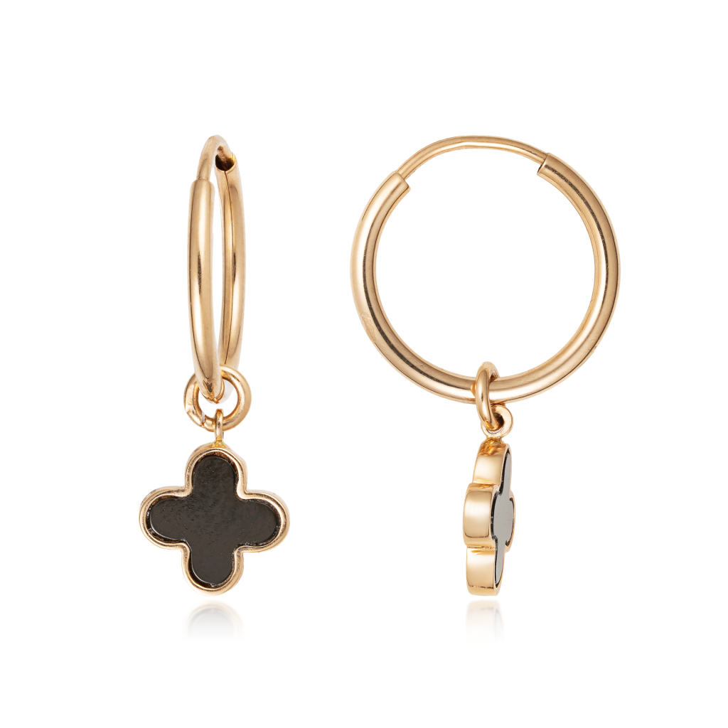 Gold earrings with onyx