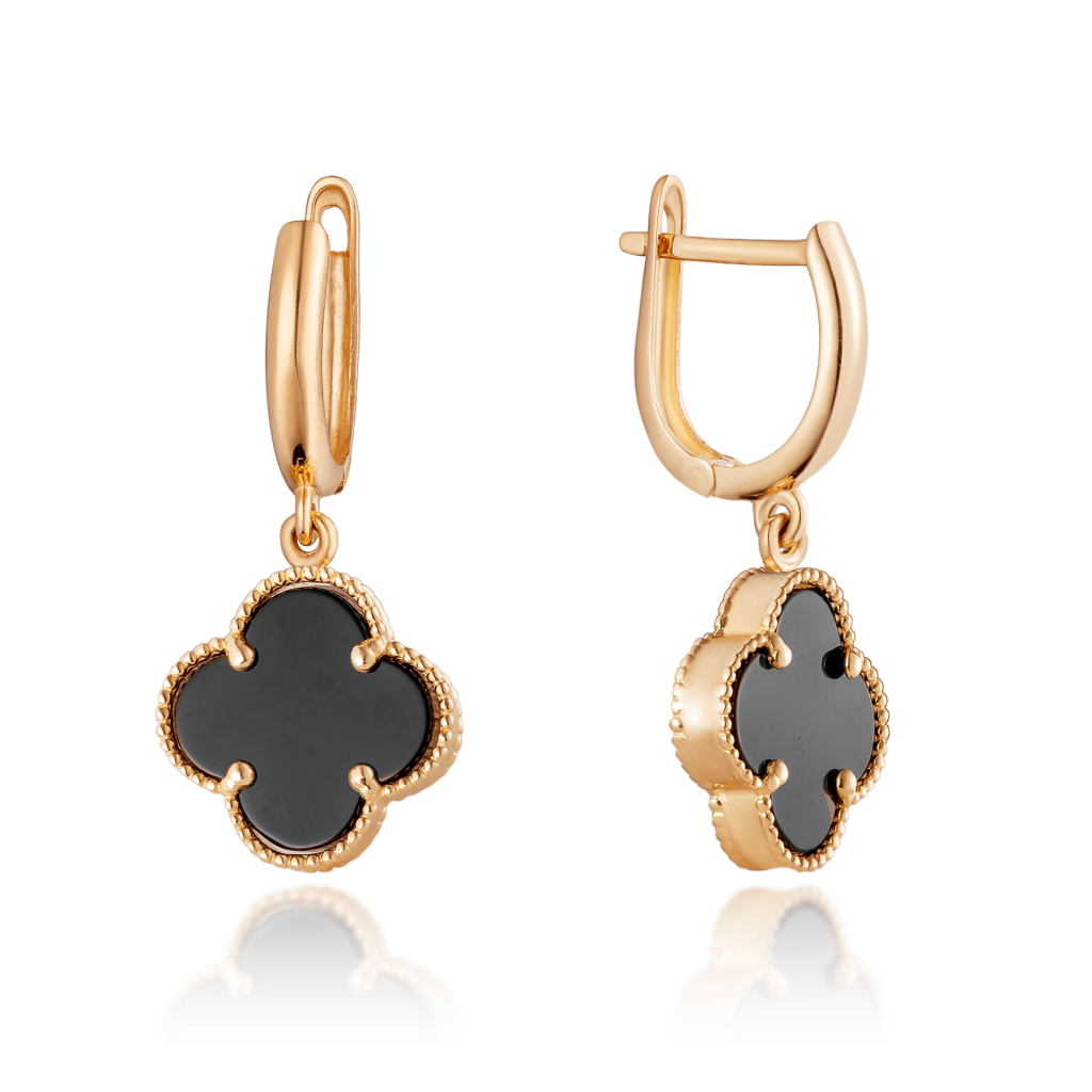 Gold earrings with onyx