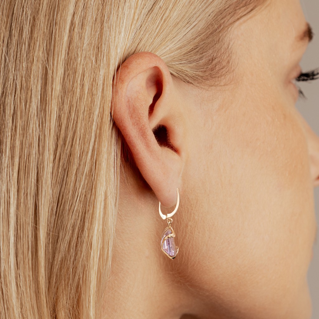 Gold earrings with amethysts