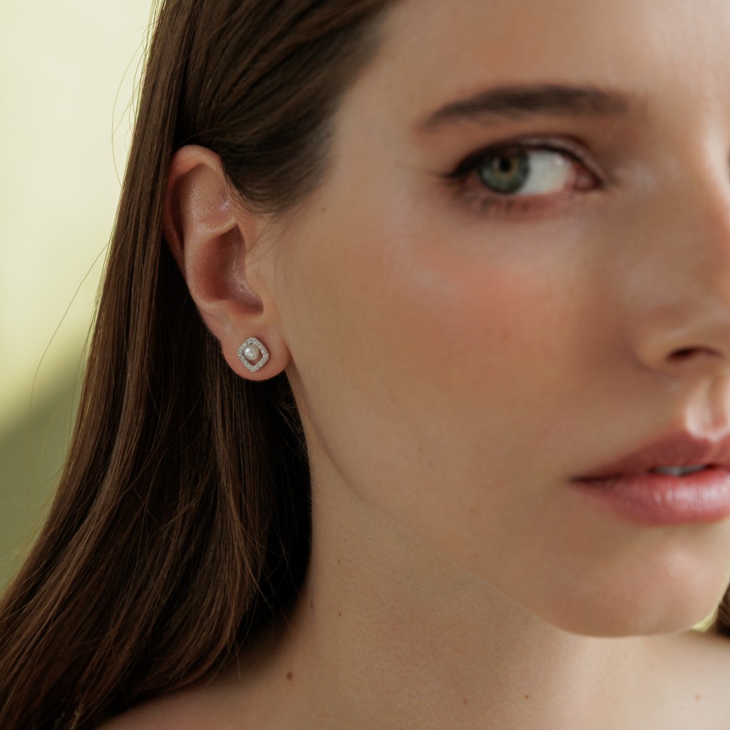Silver earrings with pearls and zirconia