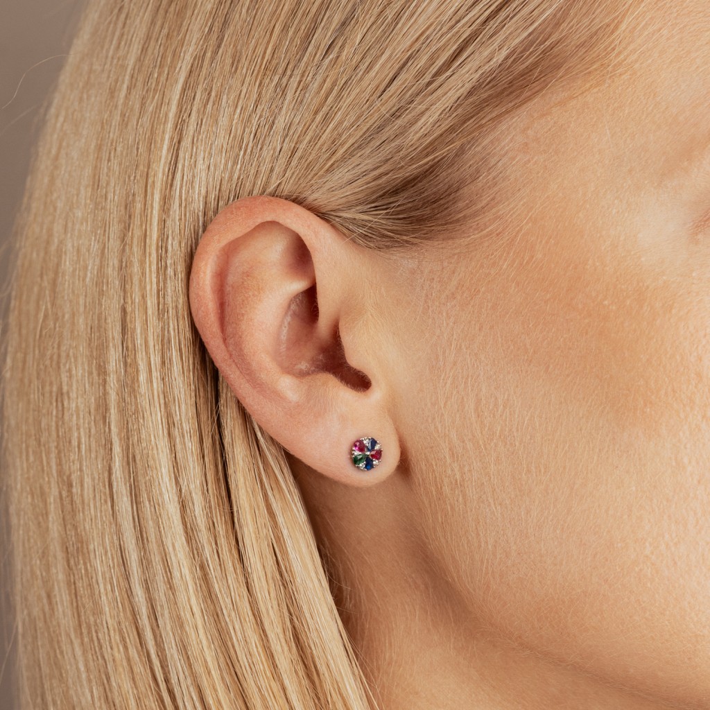 Sterling silver earrings with zircons "flowers"
