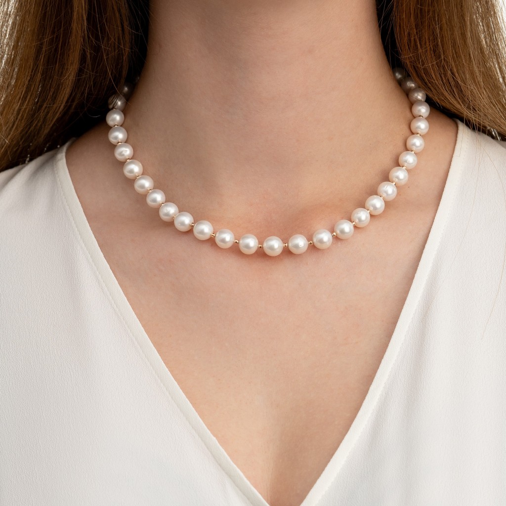 Pearl necklaces with gold 9mm