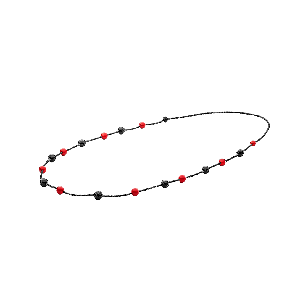 Necklaces with onyx, corals and spinels