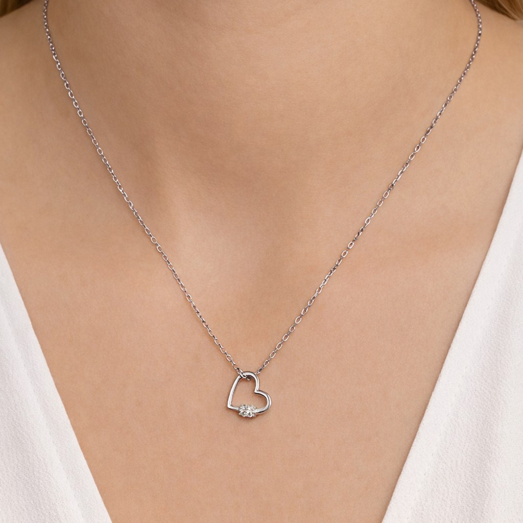 Sterling silver chain with zirconium pendant "heart"