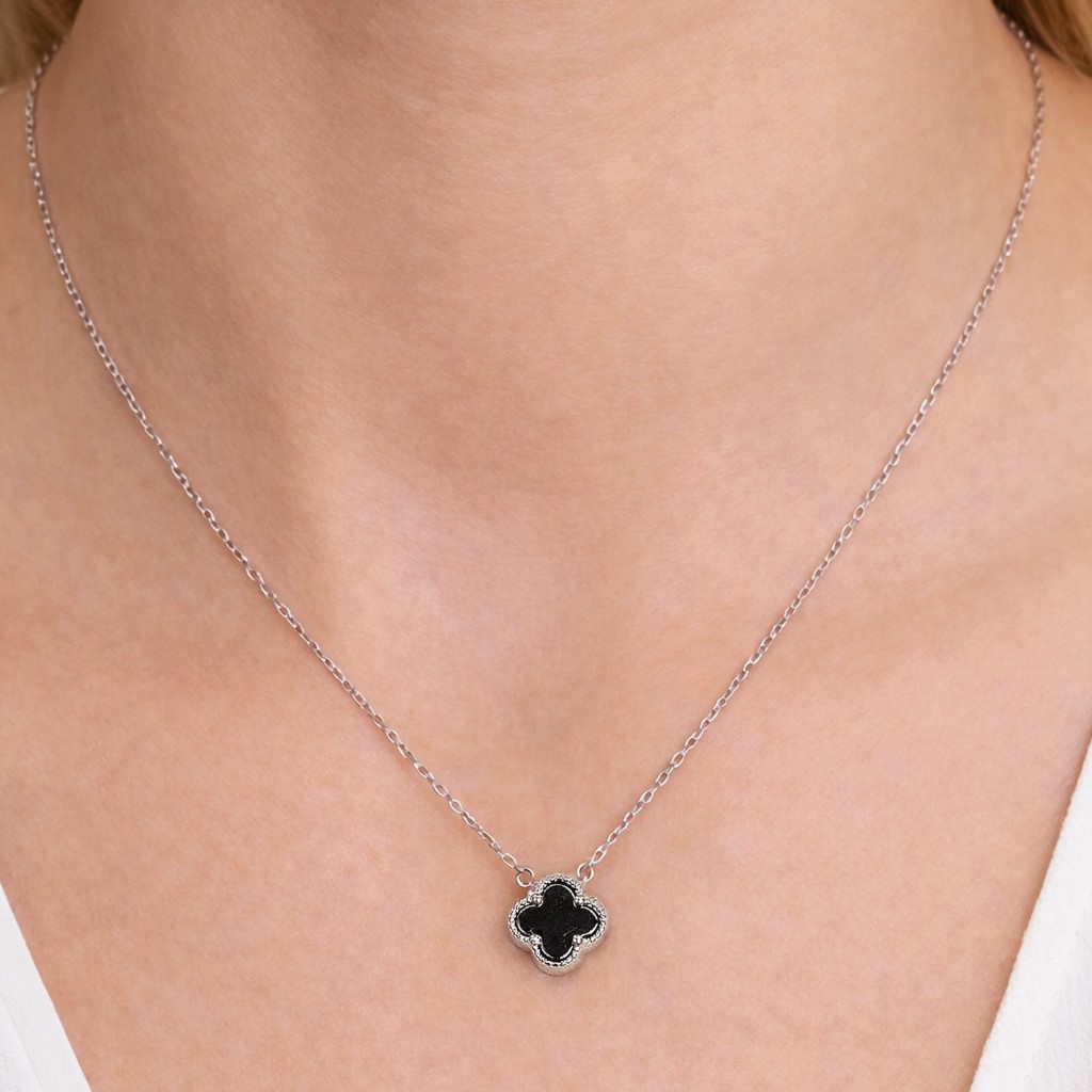 Silver chain with onyx pendant