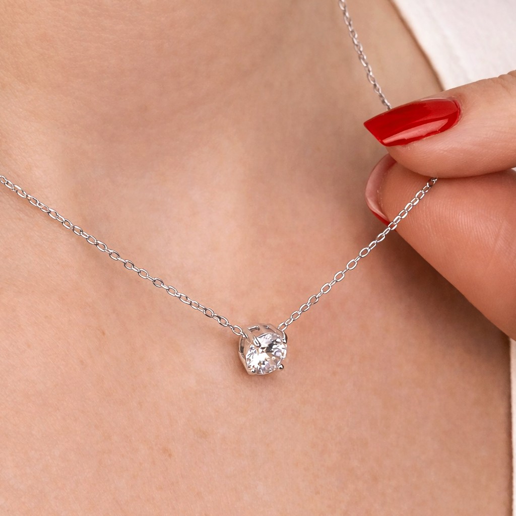 Silver chain with zircon pendant