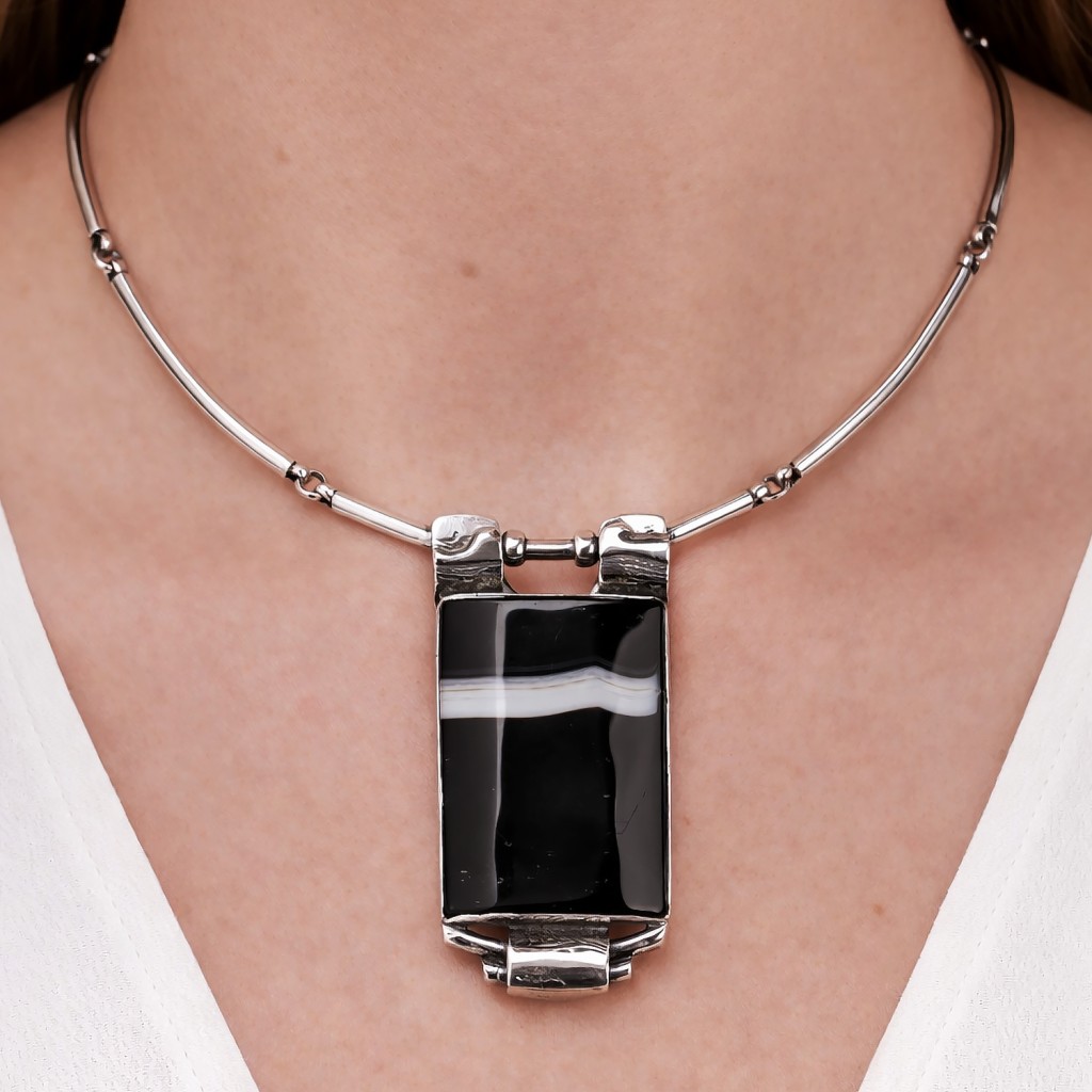 Silver necklace with agate pendant