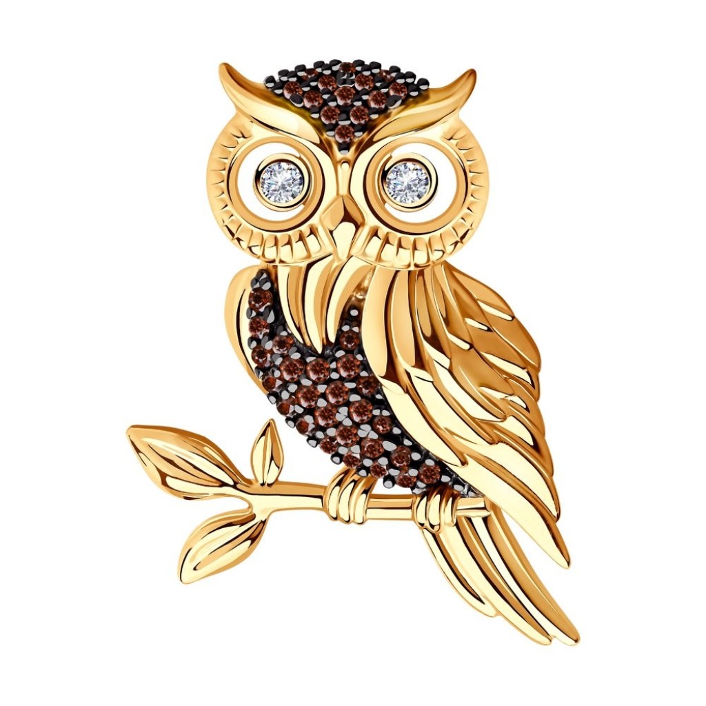 Gilded brooch with zircons "owl "