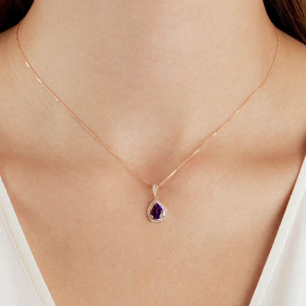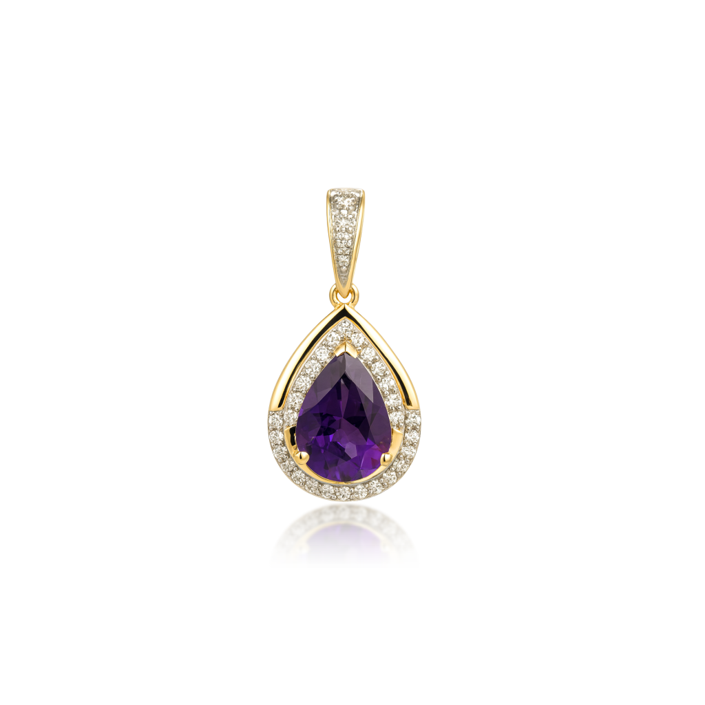 Yellow gold pendant with amethyst and diamonds