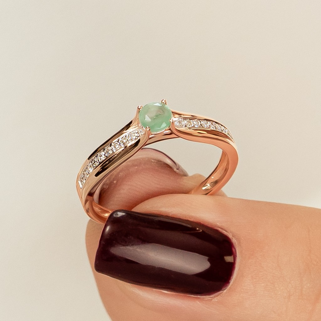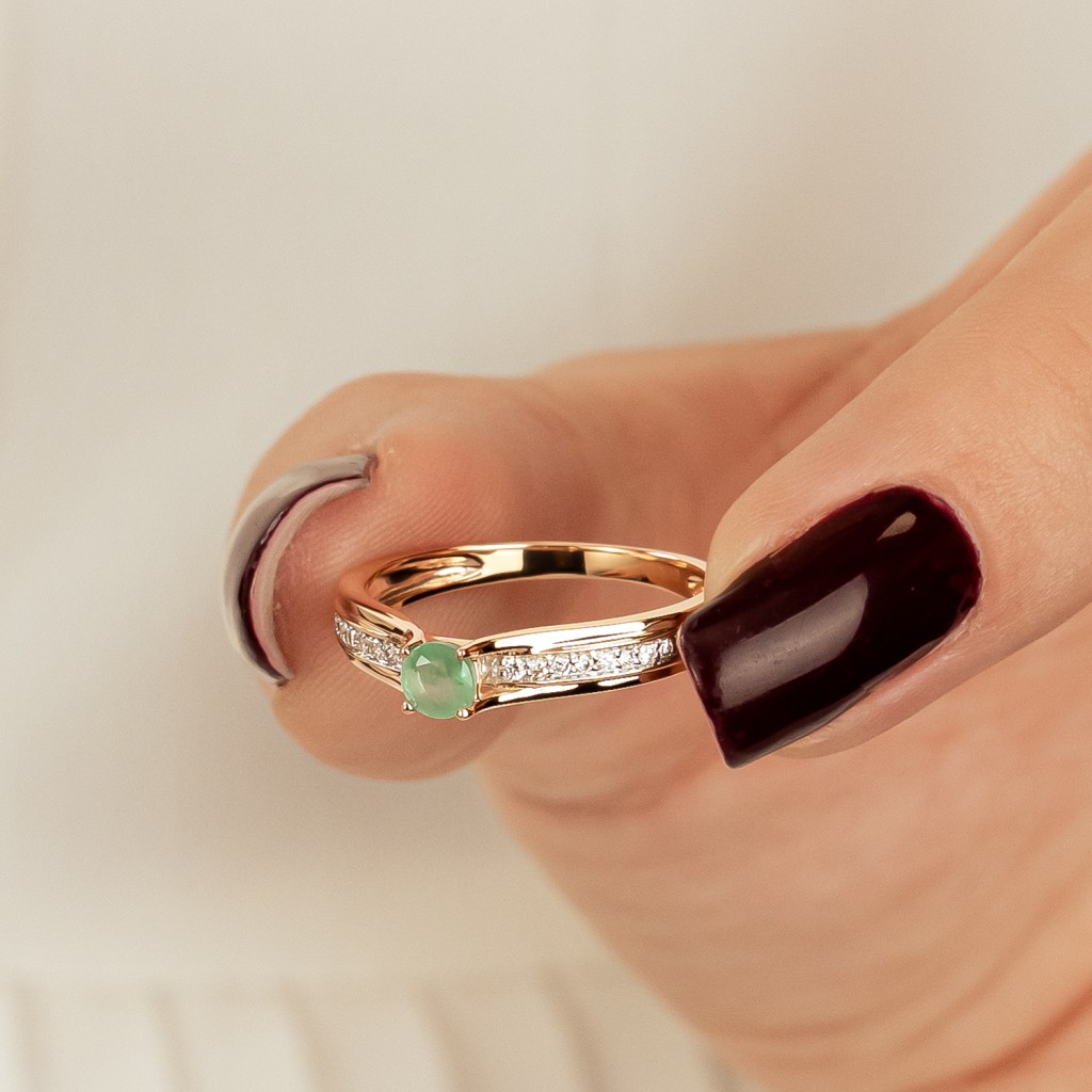 Gold ring with diamonds and emerald