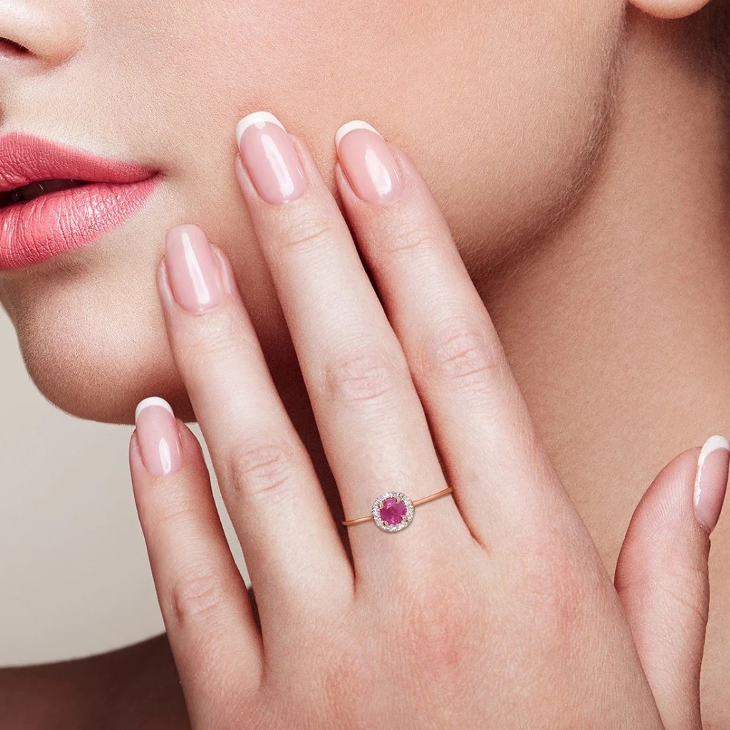 12 DEIMANTU 0.024ct W-STW/SI, 1 RUBINAS 0.204ct SI