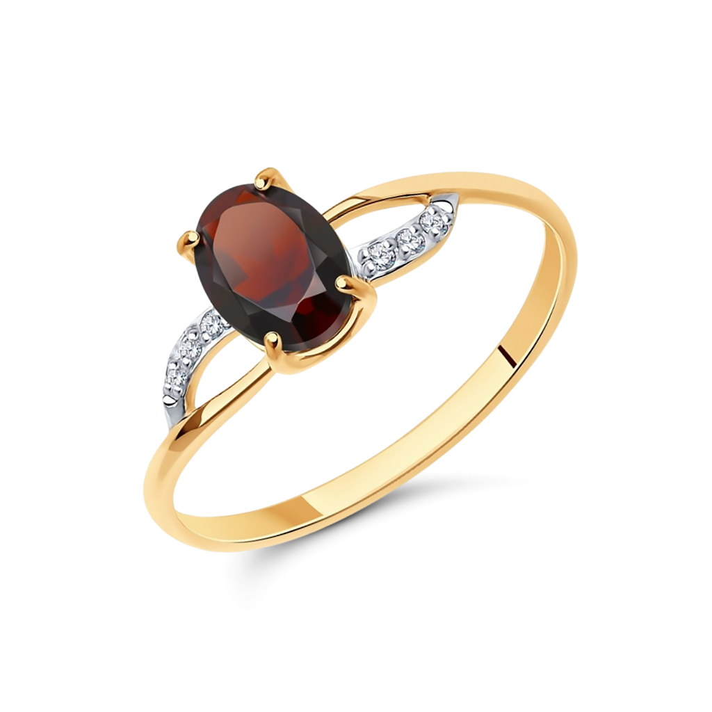 Gold ring with zircons and garnet