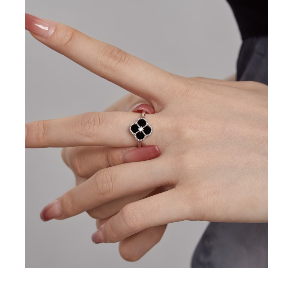 Sterling silver ring with onyx and zircons