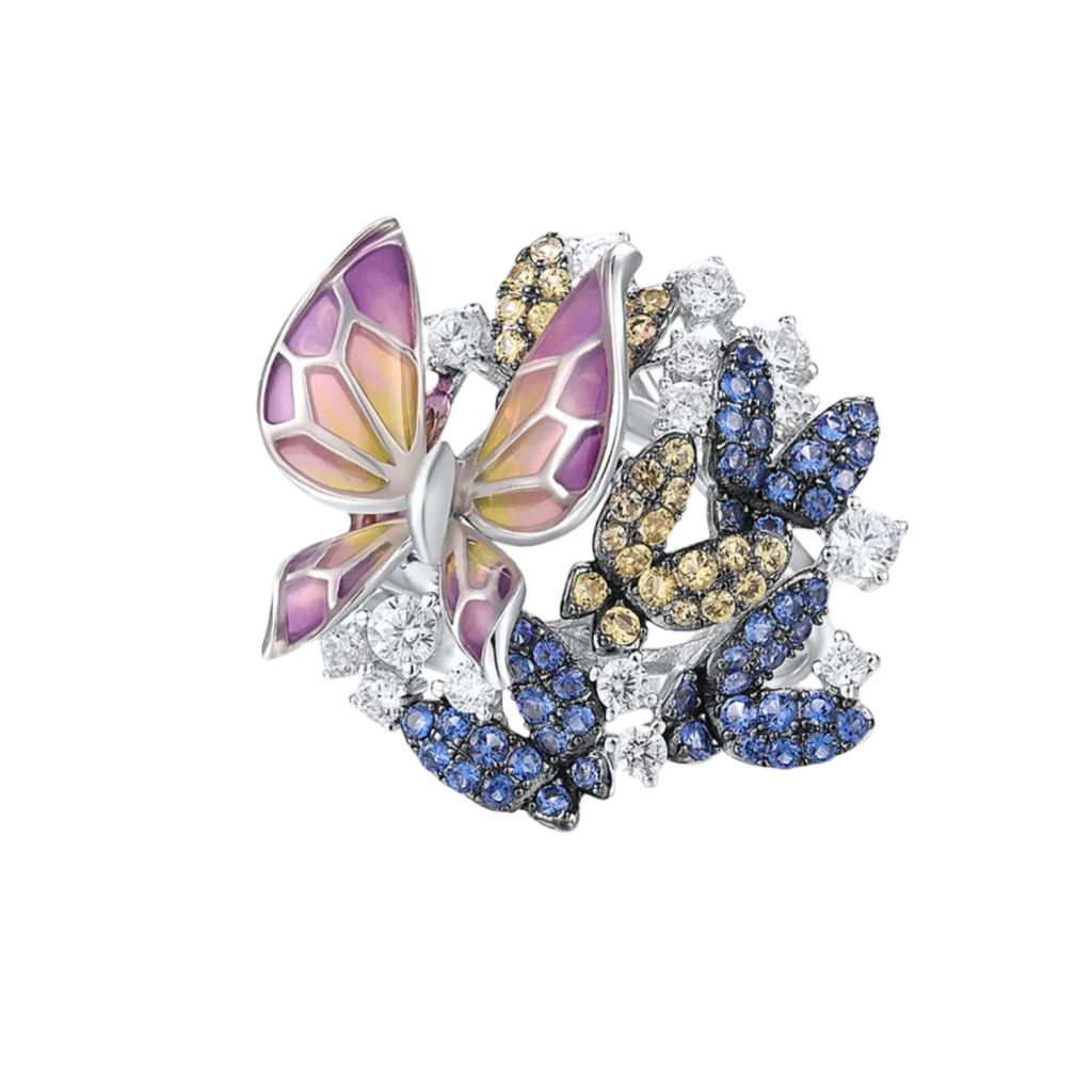 Sterling silver ring with enemal and zircons