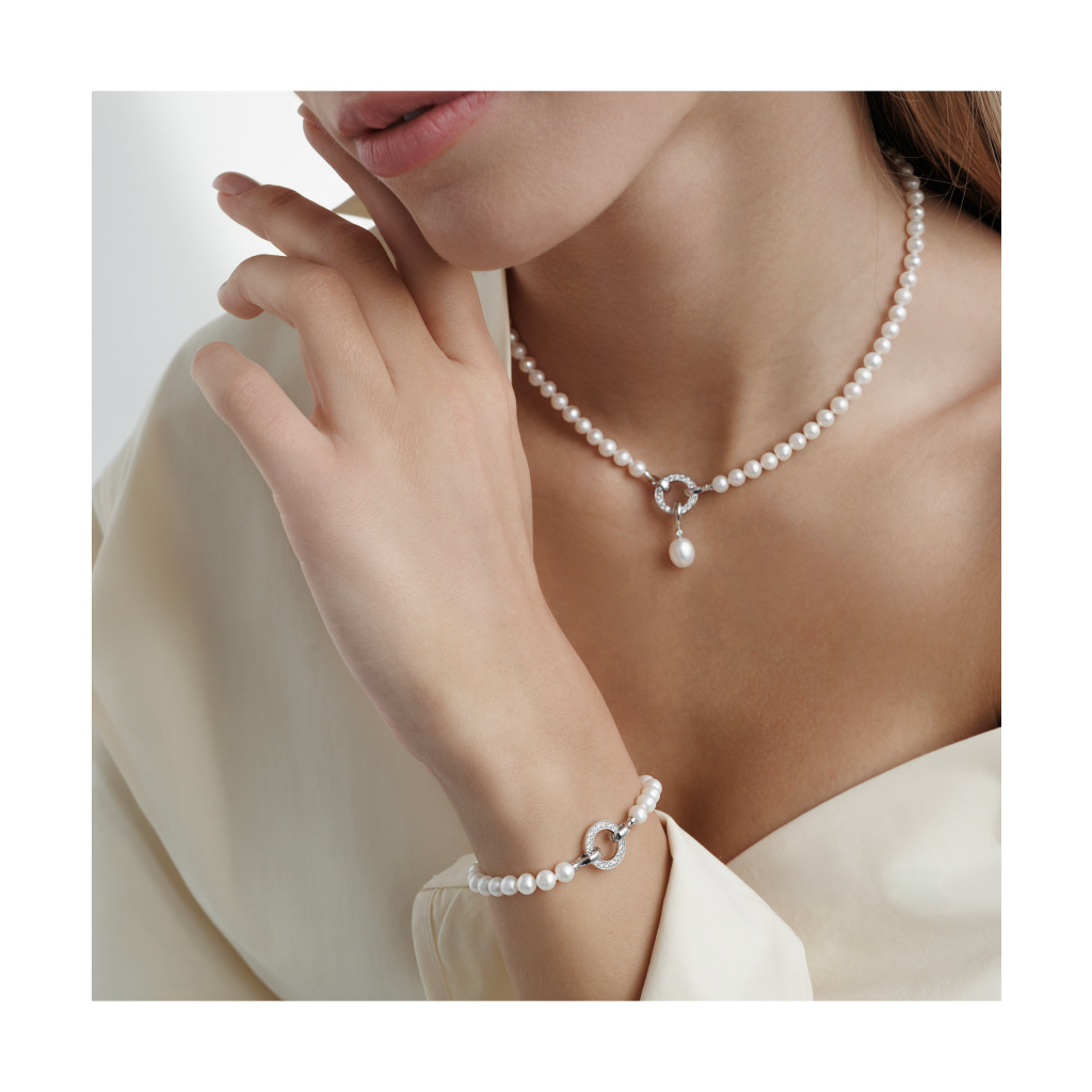 Helmikaulakoru hopealla ja zirkoniumriipus