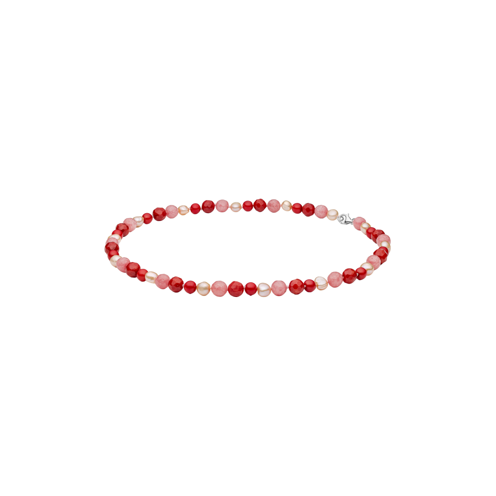 Kaulakoru korallilla, helmillä, jadella ja hopealla