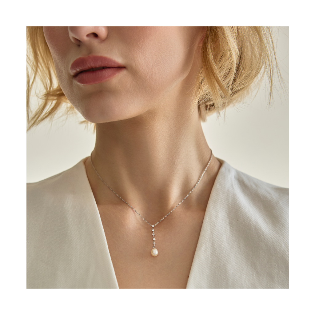 Hopeinen ketju helmiriipuksella ja zirkoneilla