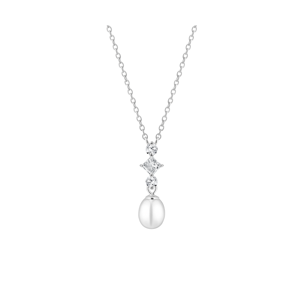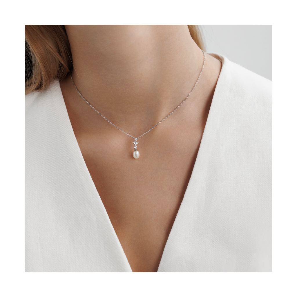 Hopeinen ketju helmiriipuksella ja zirkoneilla