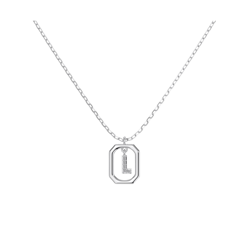 Hopeinen ketju zirkoniriipuksella "Kirjain L"