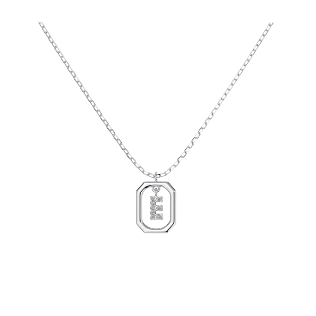 Hopeinen ketju zirkoniriipuksella "Kirjain E"