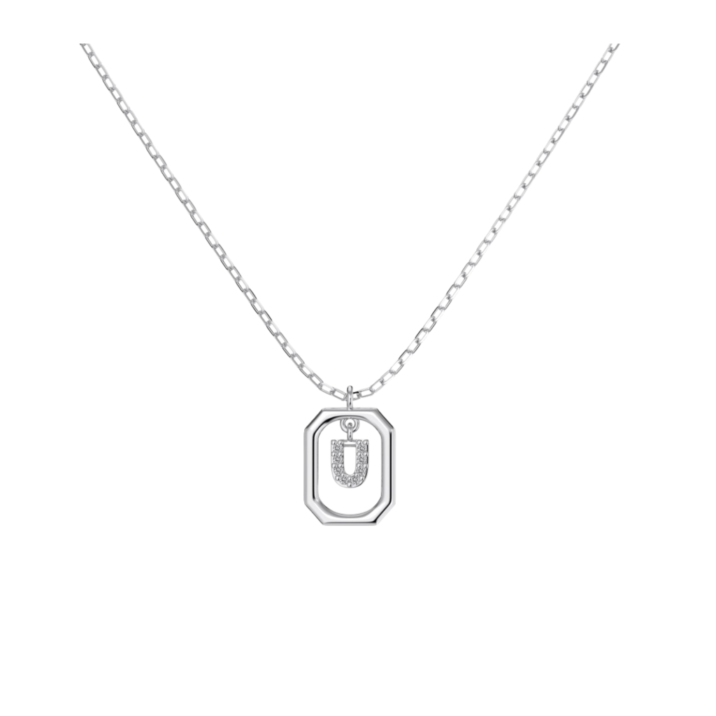 Hopeinen ketju zirkoniriipuksella "Kirjain U"