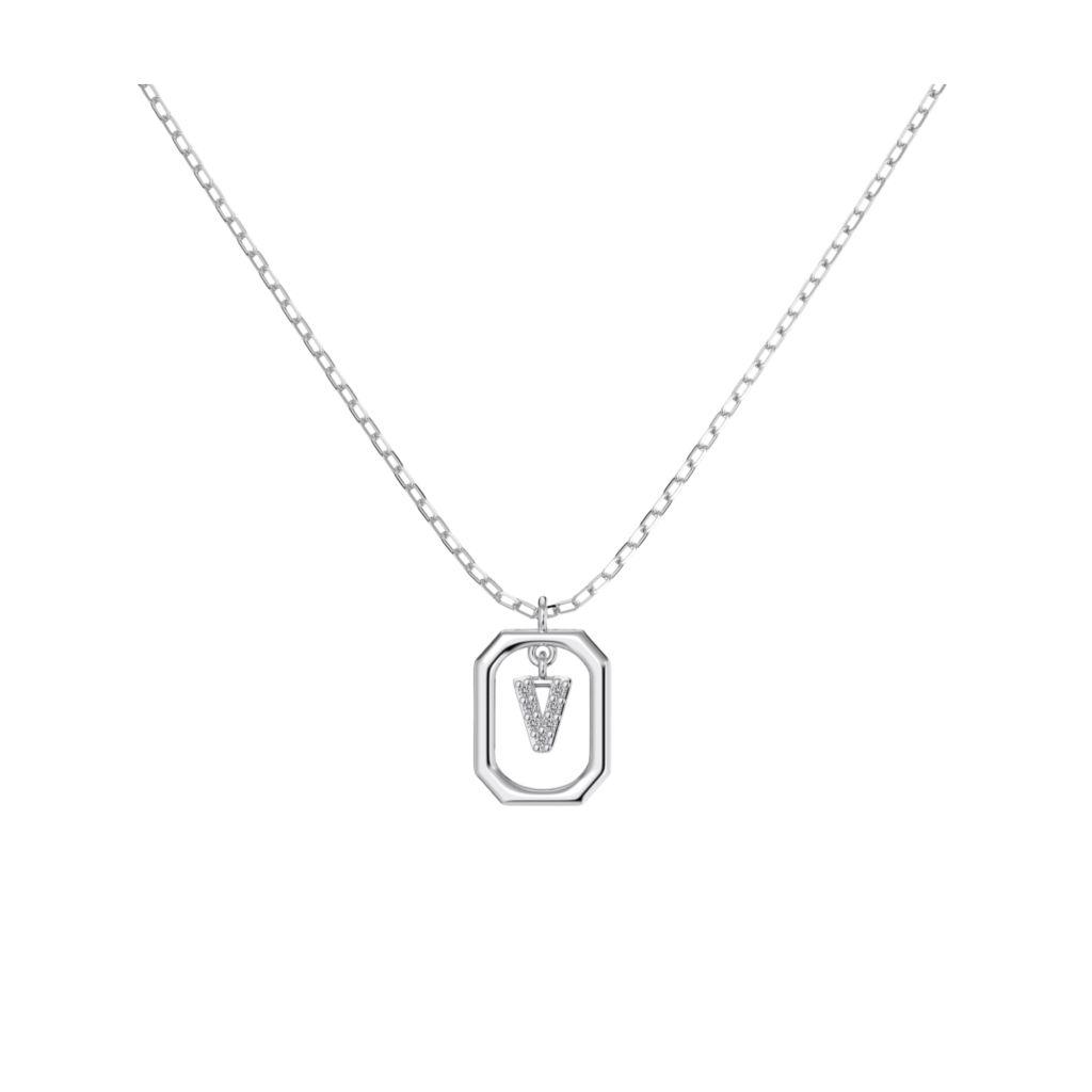 Hopeinen ketju zirkoniriipuksella "Kirjain V"