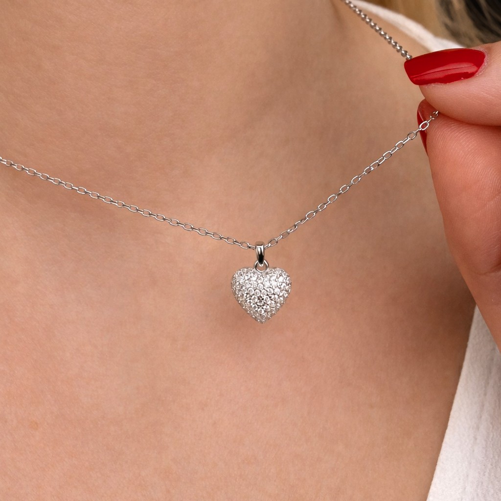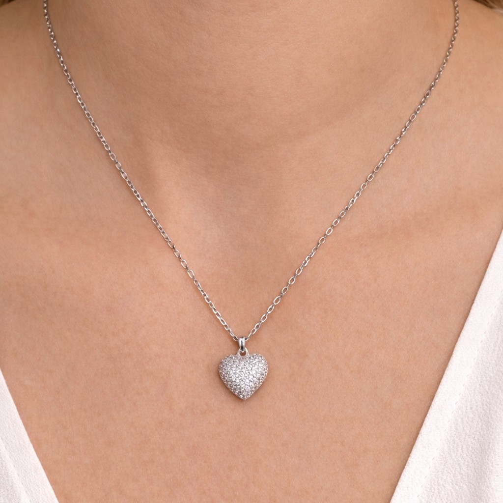 Hopeinen ketju zirkoniriipuksella "sydän"
