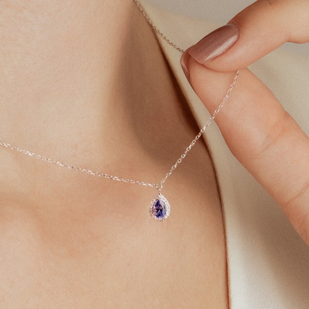 Valkokultaketju tansaniitti- ja timanttiriipuksella