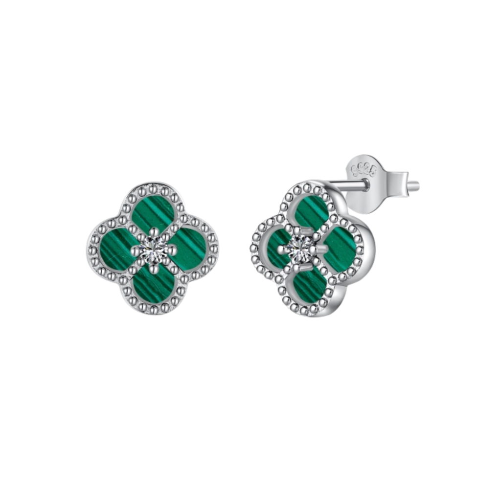 Kullatut hopeakorvakorut, joissa on malakiittia ja zirkoneja
