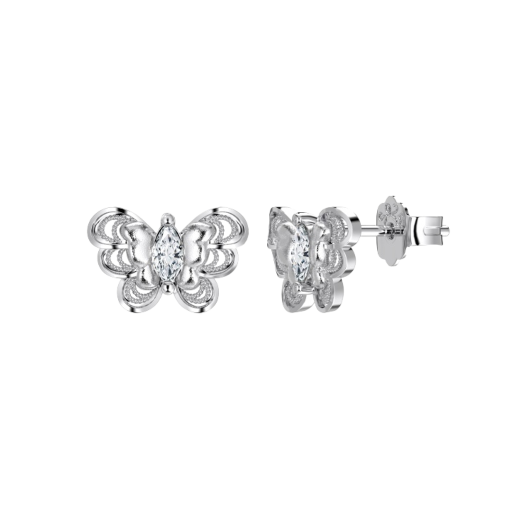 Hopeiset korvakorut zirkoneilla "Perhonen"