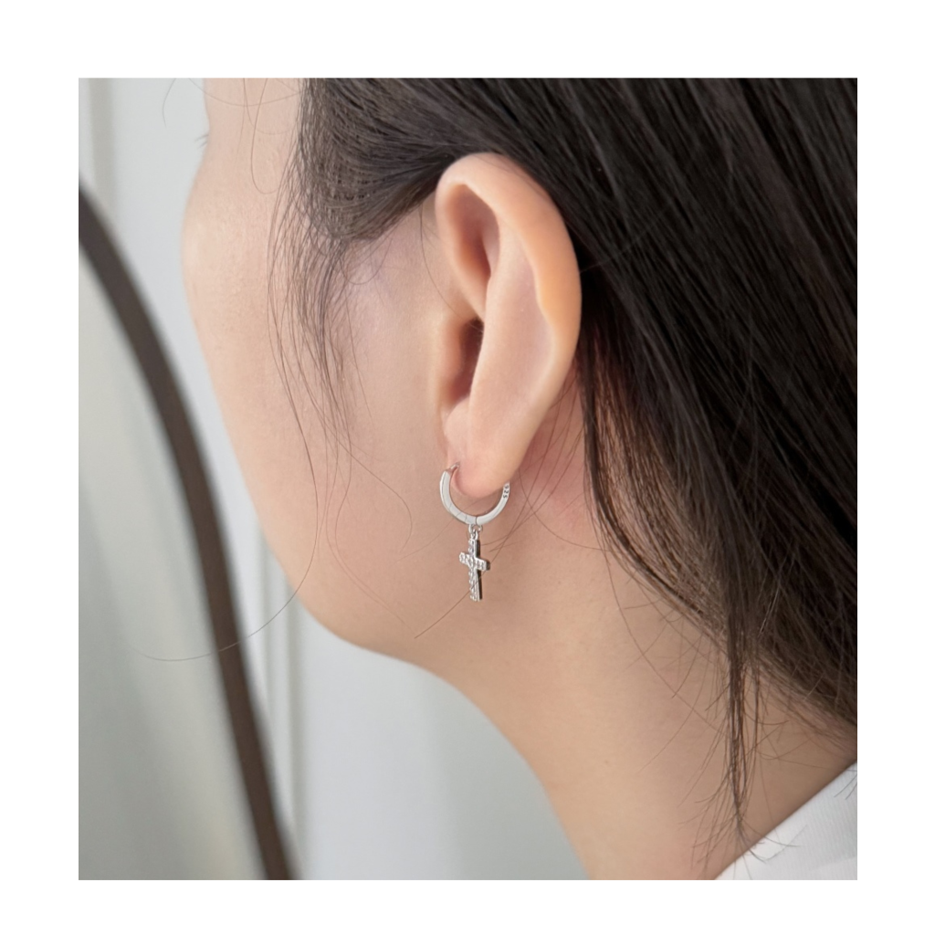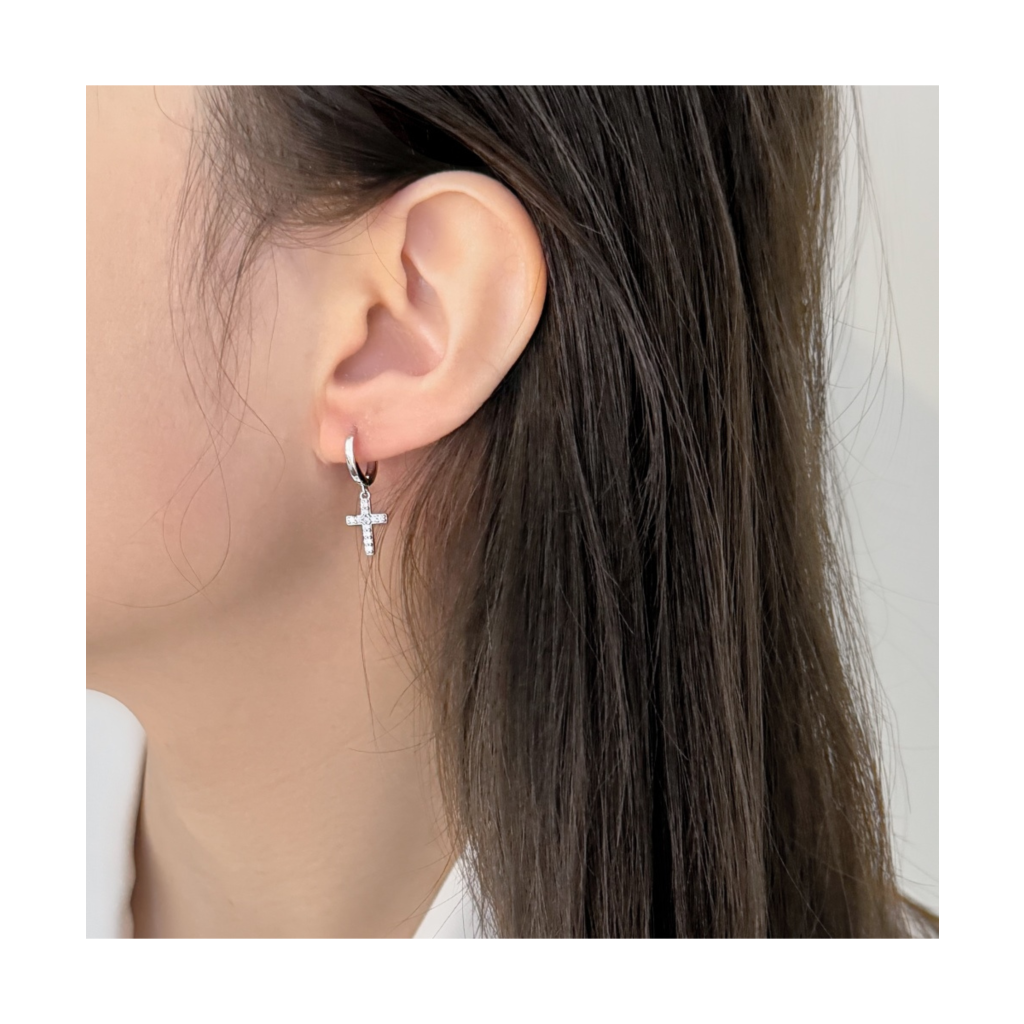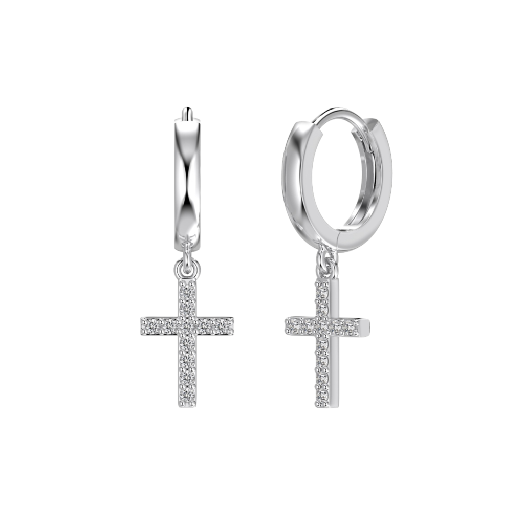 Hopeiset korvakorut zirkoneilla "Ristit"