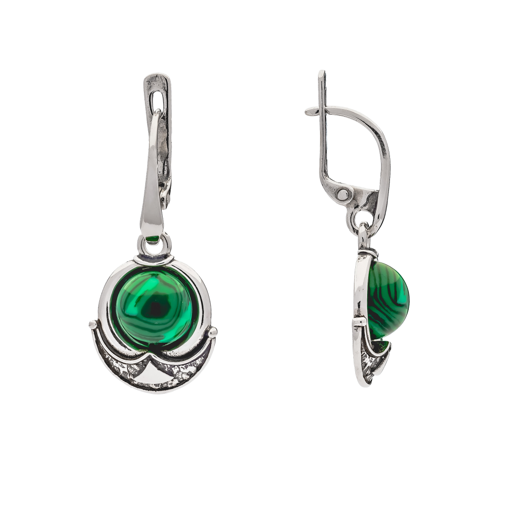 Sidabriniai auskarai su malachitu - Sidabriniai auskarai - Goldinga