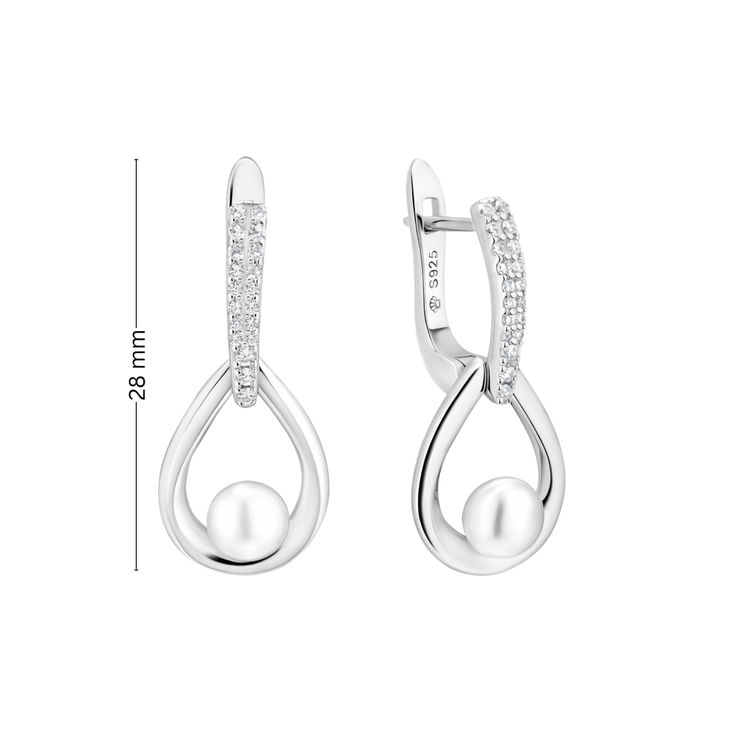 Hopeiset korvakorut helmillä ja zirkoneilla
