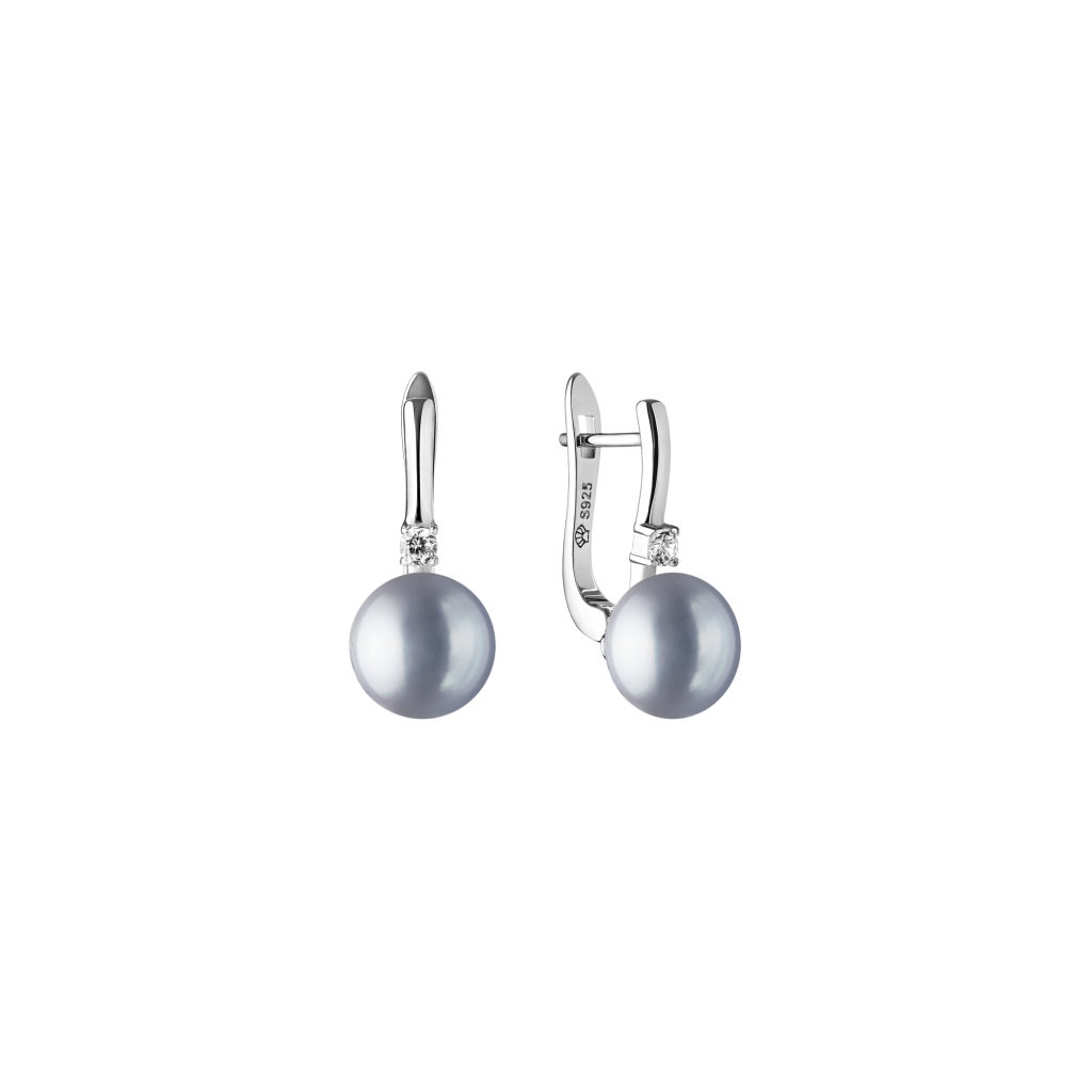 Hopeiset korvakorut helmillä ja zirkoneilla