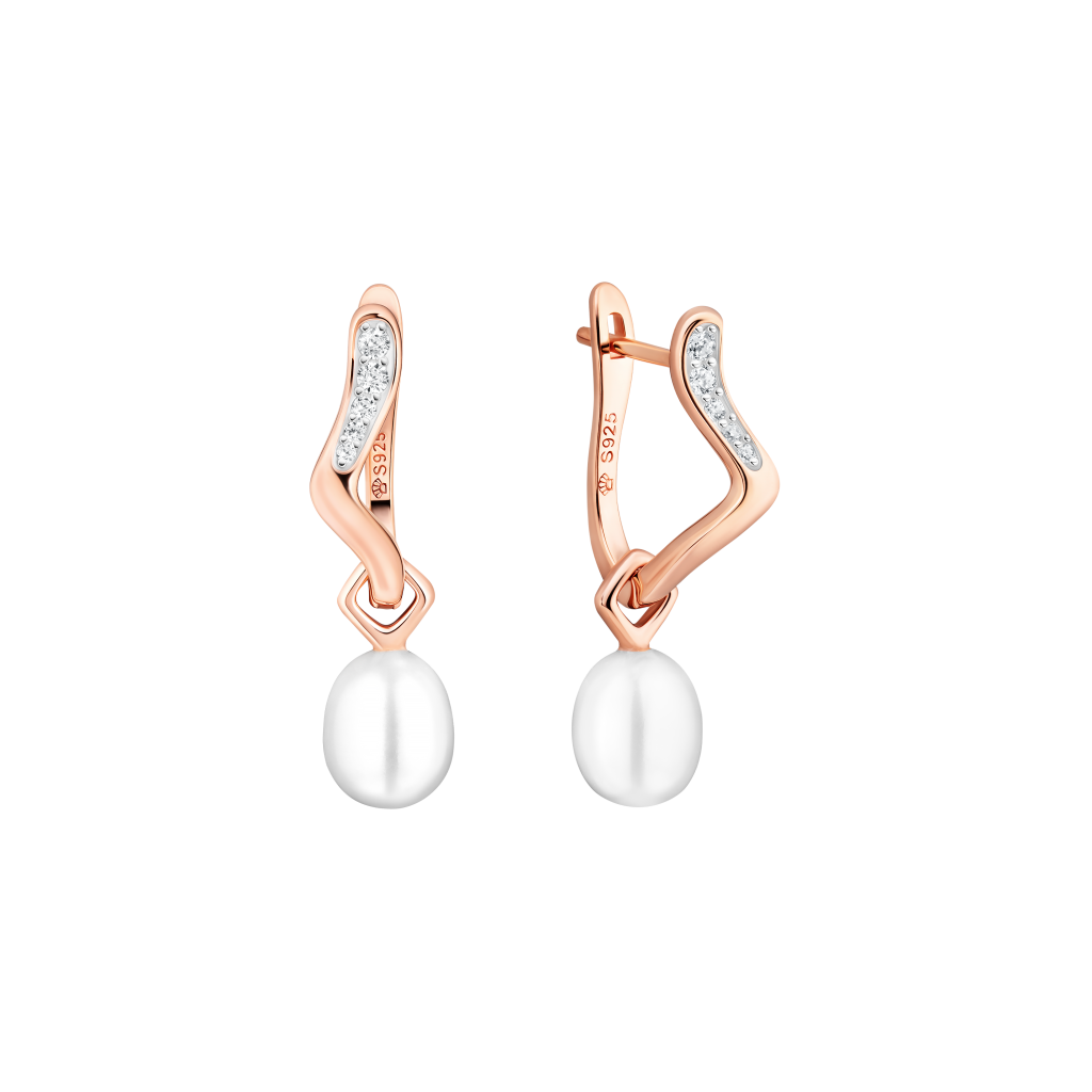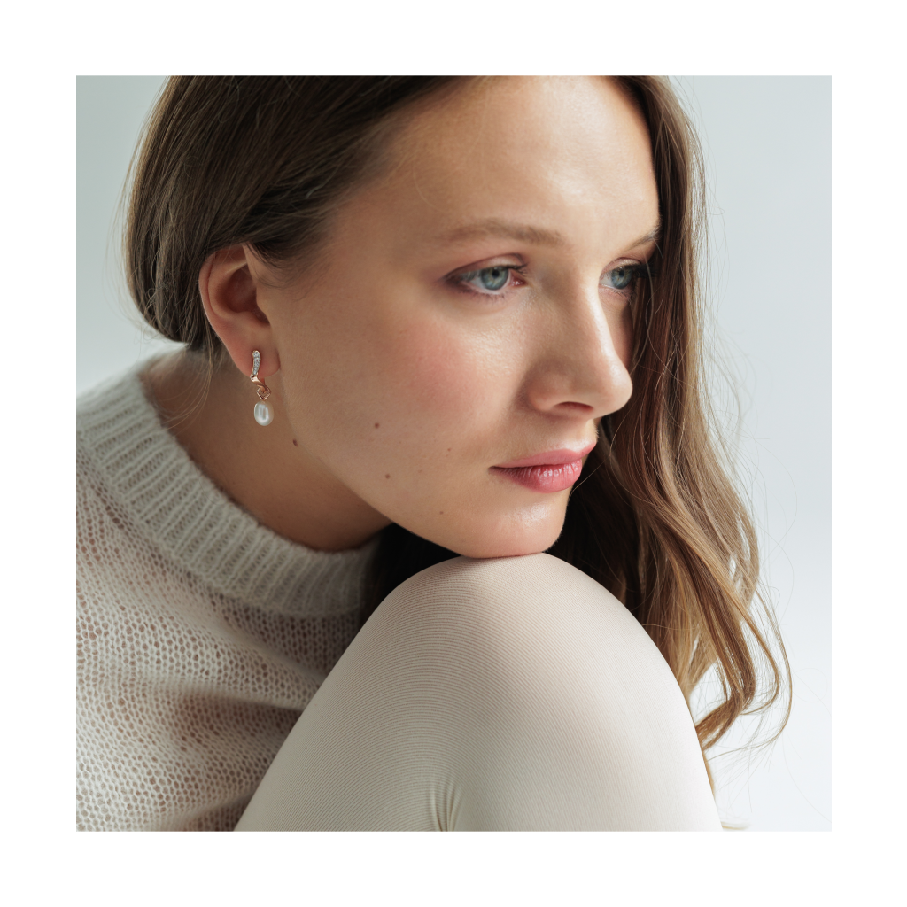 Kultaahopeiset korvakorut helmillä ja zirkoneilla