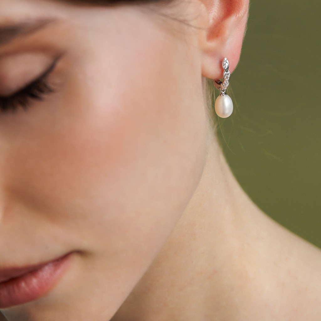 Hopeiset korvakorut helmillä ja zirkoneilla