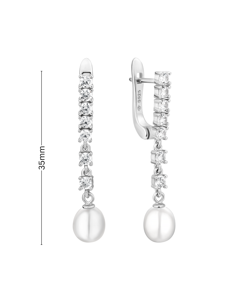 Hopeiset korvakorut helmillä ja zirkoneilla