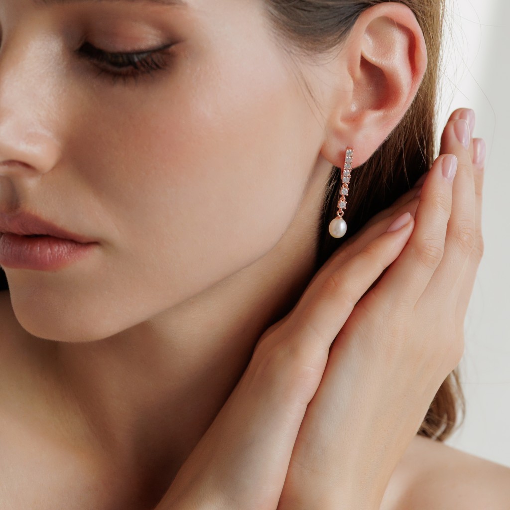 Kultaahopeiset korvakorut helmillä ja zirkoneilla