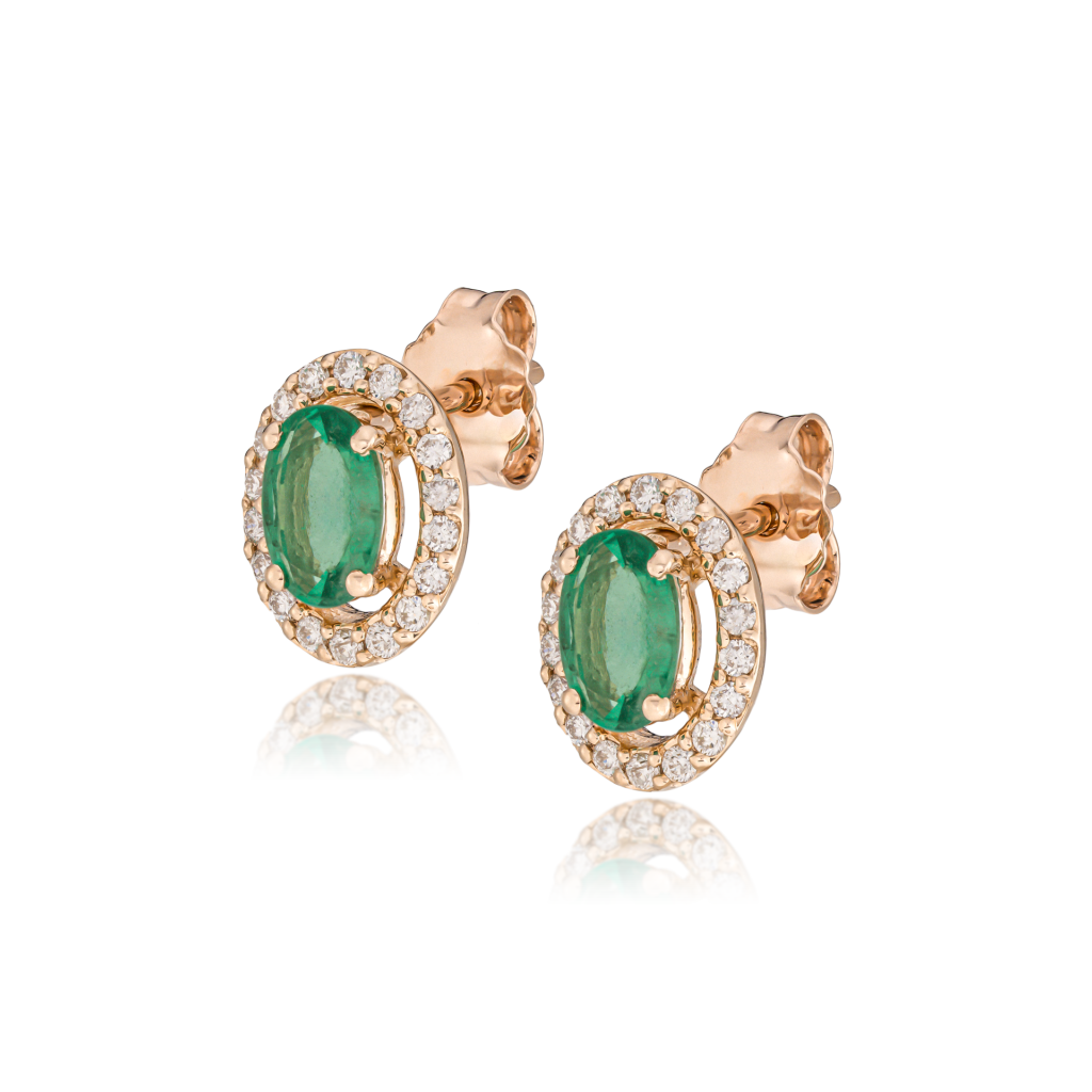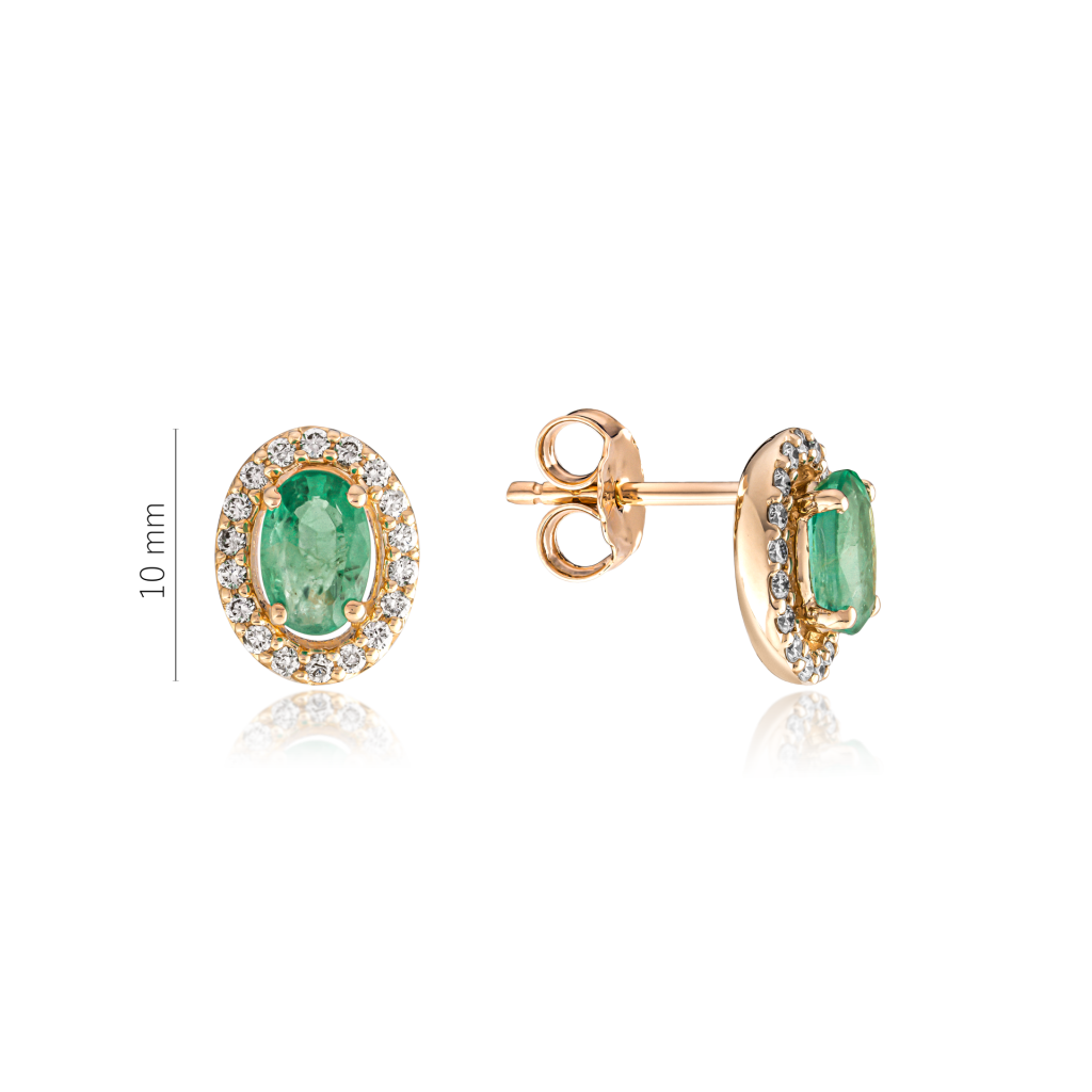 Kultaiset korvakorut smaragdeilla ja timantteja