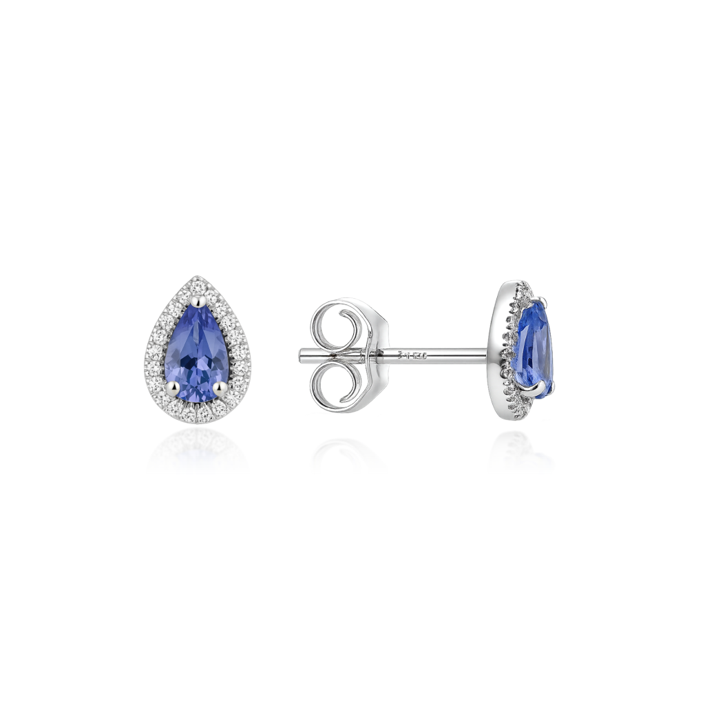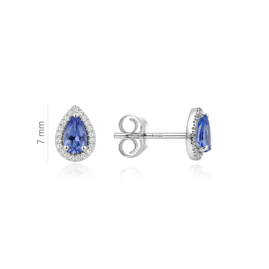 Valkokultaiset korvakorut tanzaniitilla ja timanteilla