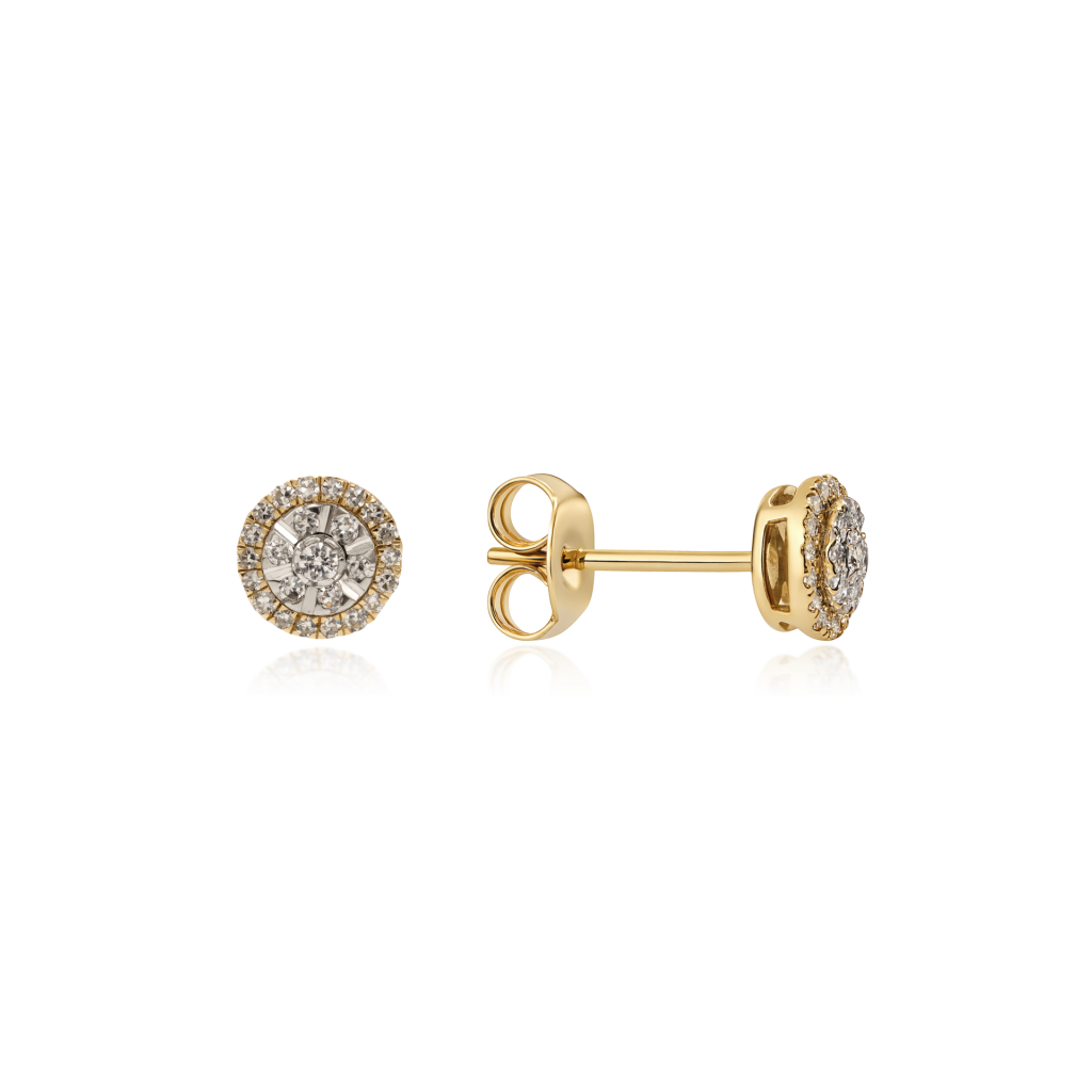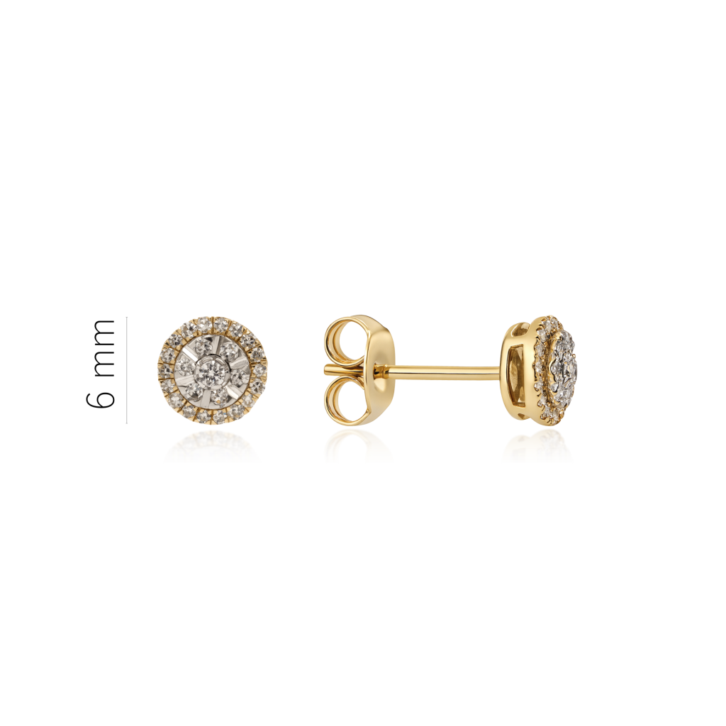 Keltaiset kultaiset korvakorut timanteilla