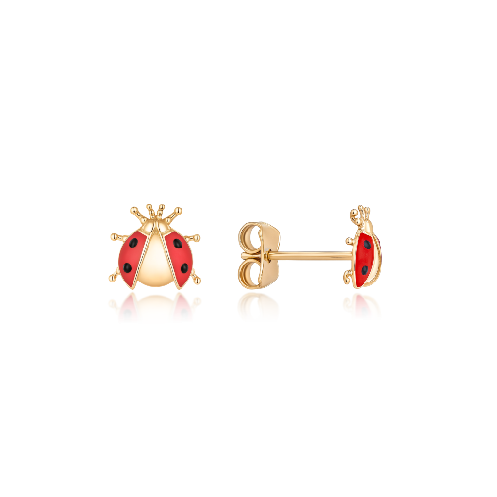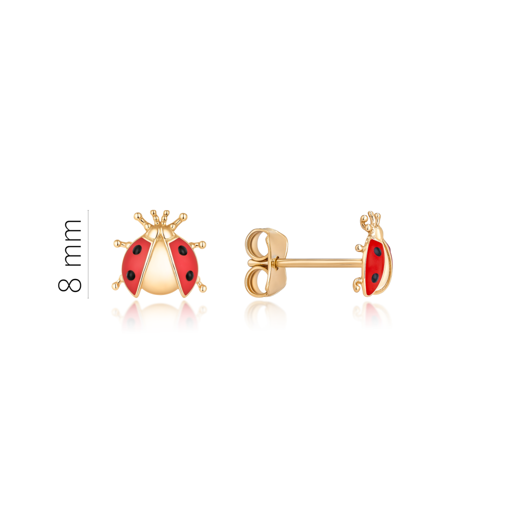 Lasten Kultaiset korvakorut emalilla "leppäkerttus"