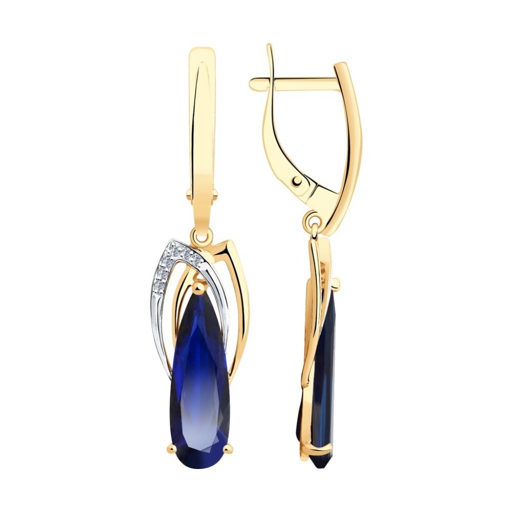 Kultaiset korvakorut korundilla ja zirkoneilla