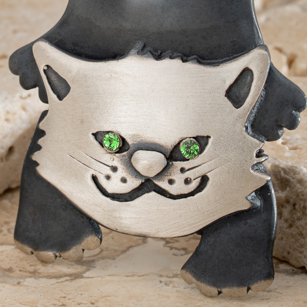 Hopeinen rintaneula kristalleilla "Kissa"