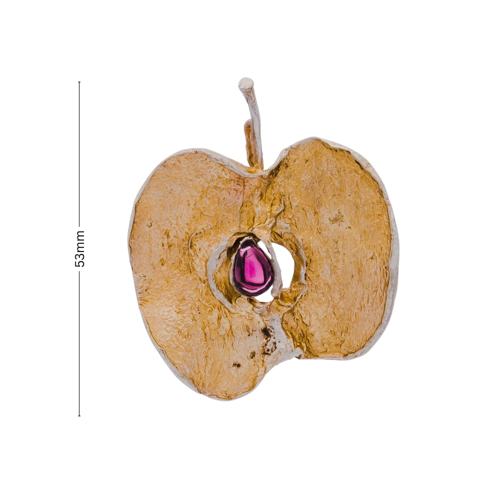 Hopeinen rintaneula granaatilla "omena"